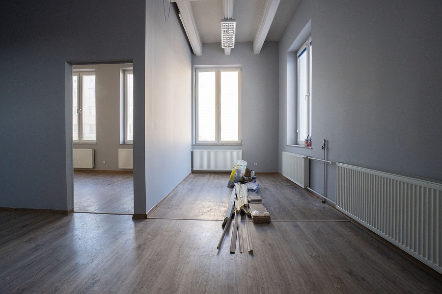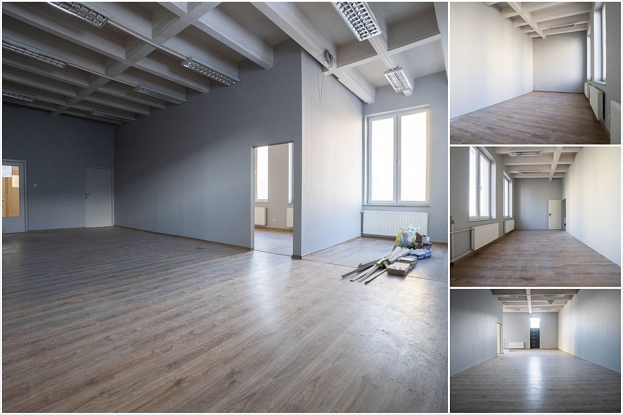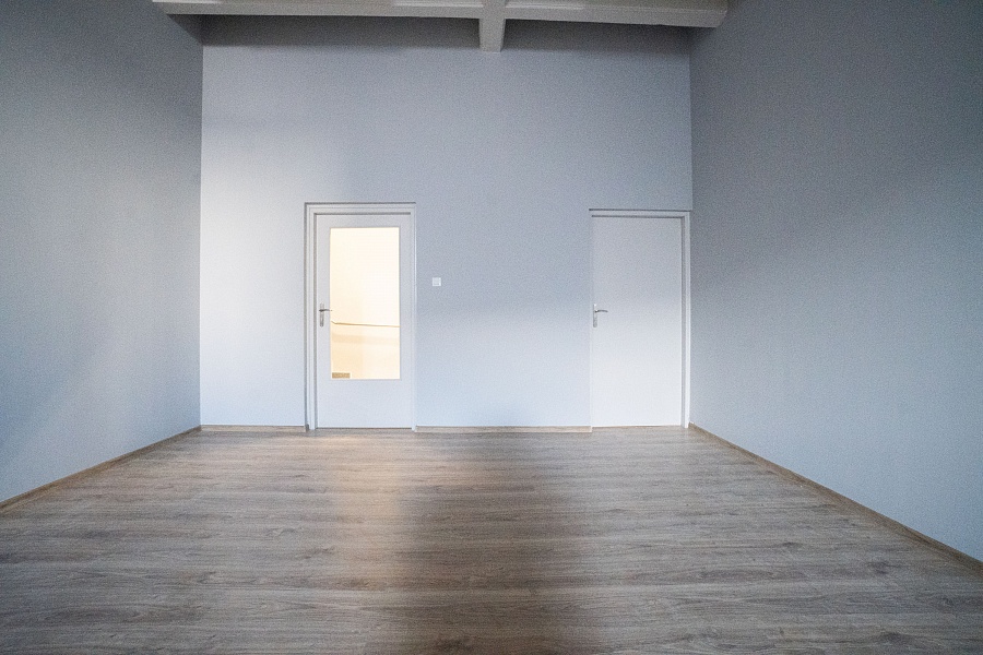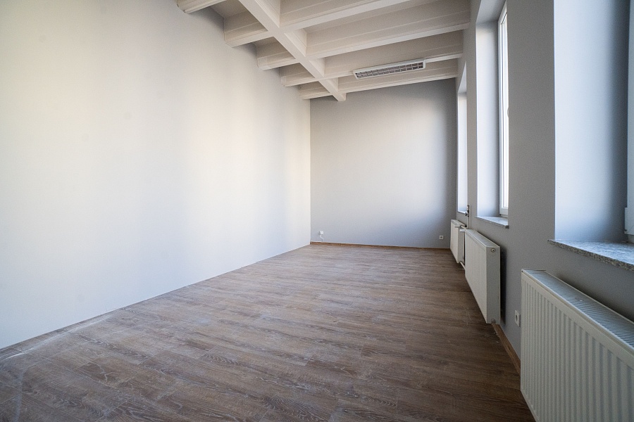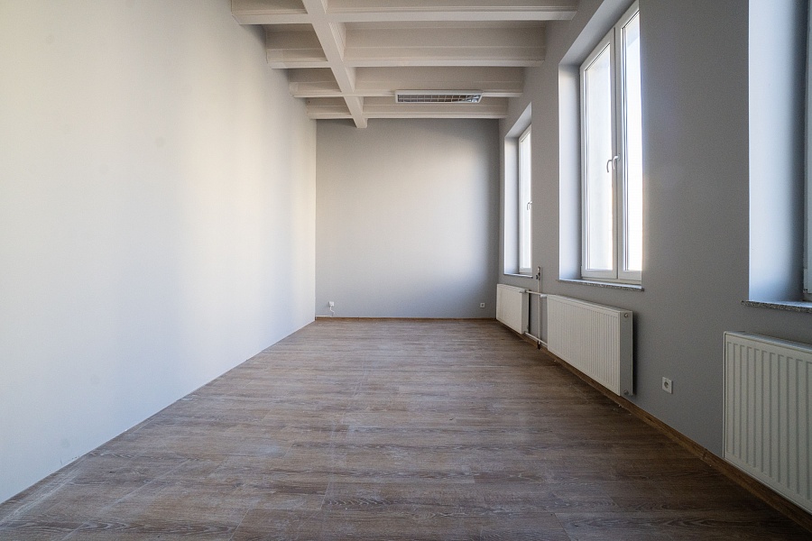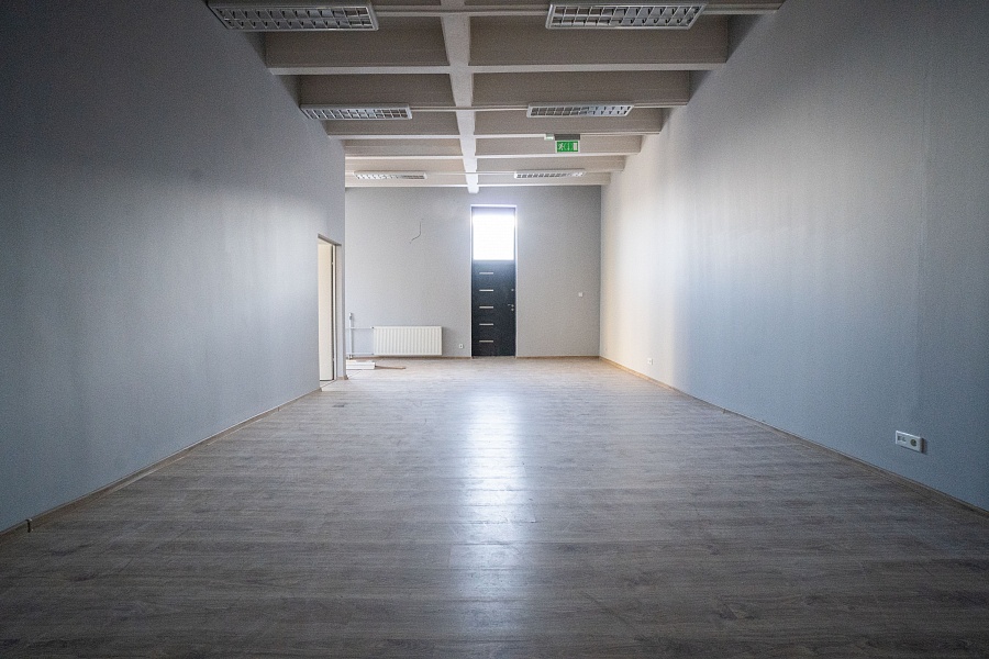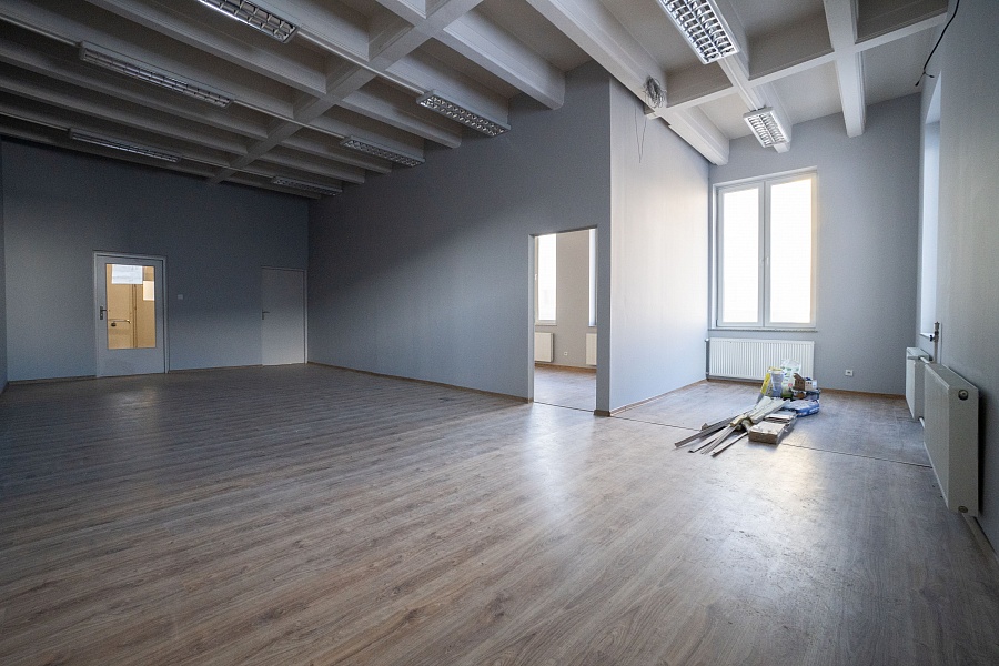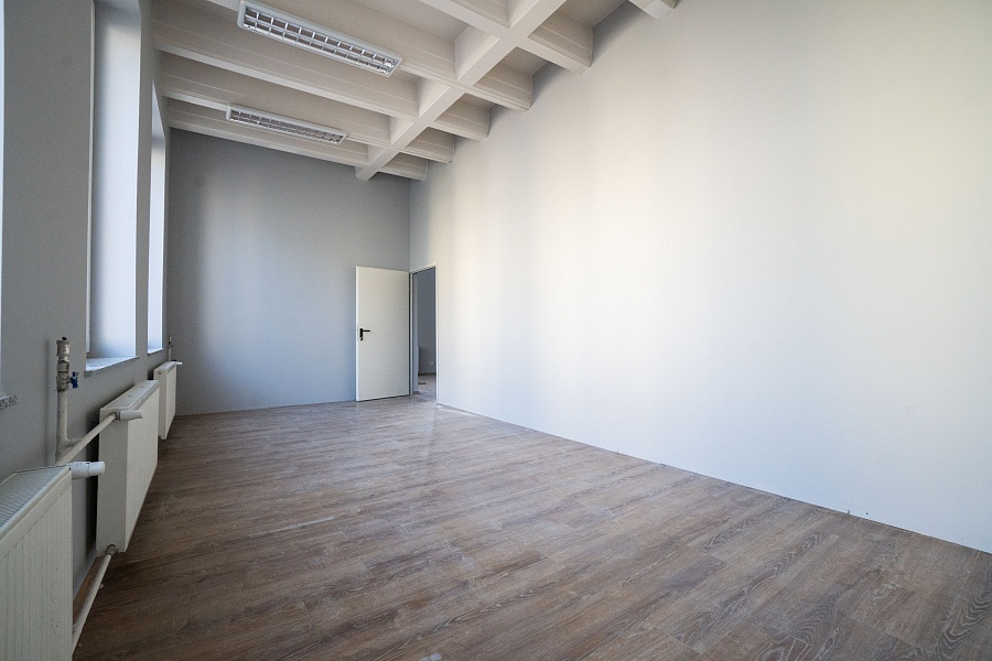 Lokal ma powierzchnię 78.8 m2 i aktualnie został podzielony na jedno duże pomieszczenie (ok. 55.2 m2) oraz drugi pokój (ok. 23.6 m2). Podział został dokonany za pomocą ścianki działowej, istnieje możliwość zmiany układu.
